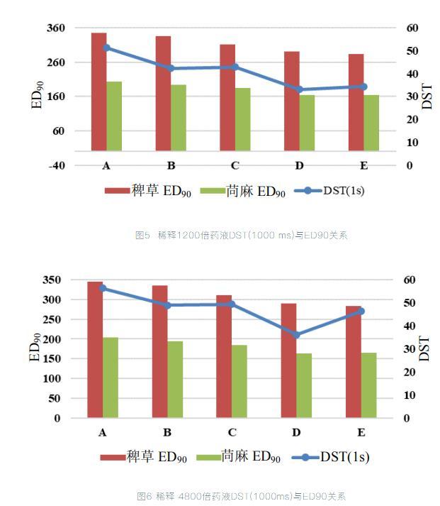表1不同稀釋倍數(shù)藥液DST變化值