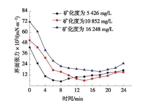 圖3礦化度對體系油水界面張力影響