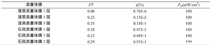 表1不同層數類囊體膜LB膜組裝成光電池的光電性能參數