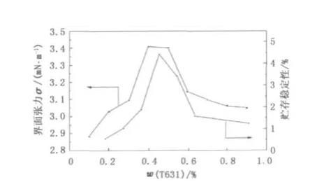 圖3締合型增稠劑T對油水界面張力和貯存穩定性的影響