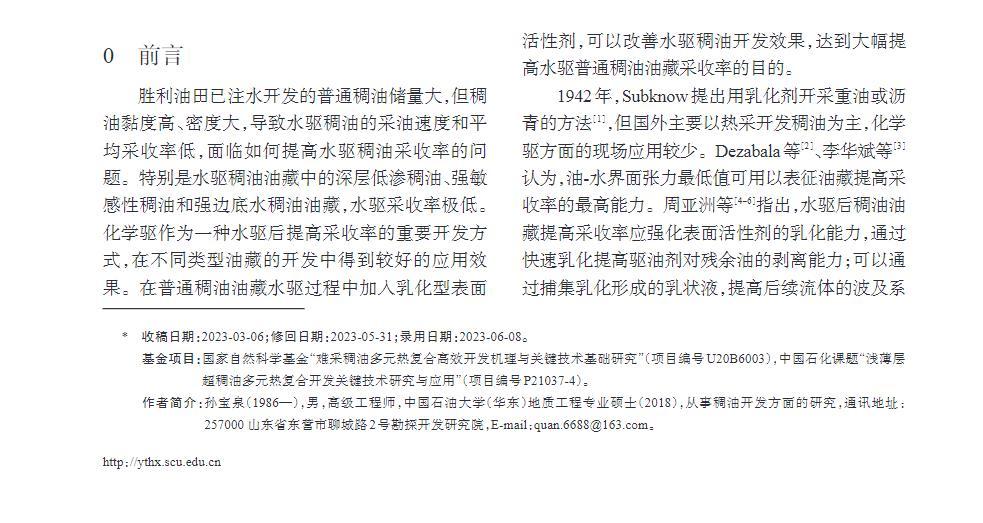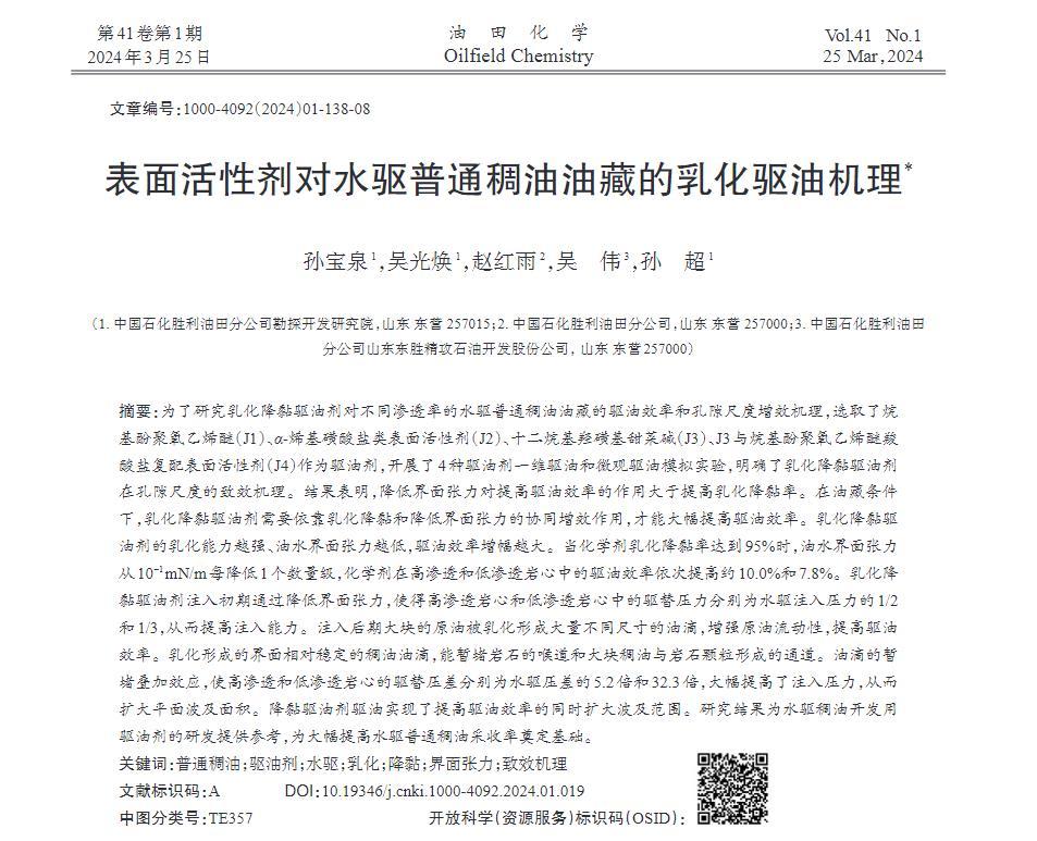 研究結果為水驅稠油開發用驅油劑的研發提供參考,為大幅提高水驅普通稠油采收率奠定基礎。