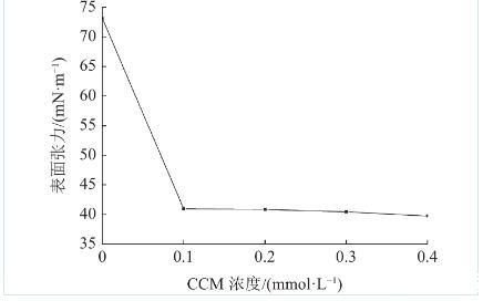 圖1不同濃度CCM溶液的表面張力變化