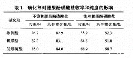 表1磺化劑對腰果酚磺酸鹽收率和純度的影響