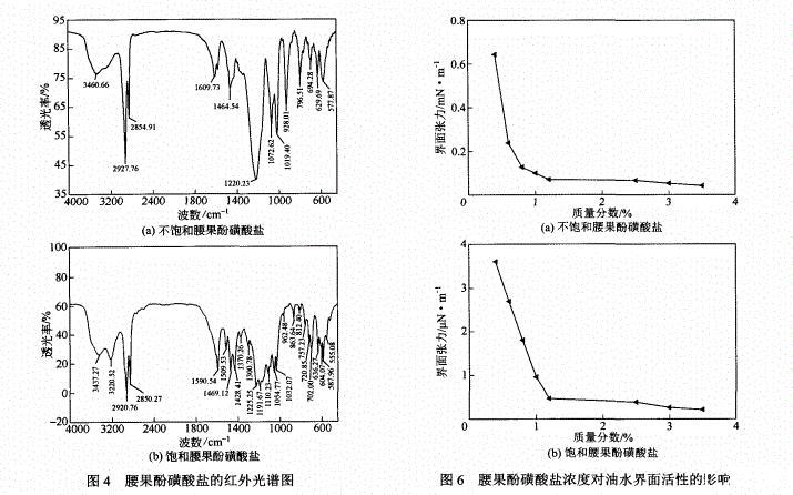 側(cè)鏈烷基的飽和度對腰果酚磺酸鹽水溶液的表面活性、界面活性的影響