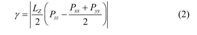 對于表面活性劑來說降低界面張力的能力是考察其性能好壞的重要指標之一,下面通過考察不同體系的界面張力和界面寬度來進一步說明OPES的界面性能,如表1所示。對于界面張力可以利用式(2)來計算,其中LZ為盒子高度;Pxx、Pyy、Pzz分別為x、y、z方向的壓力。