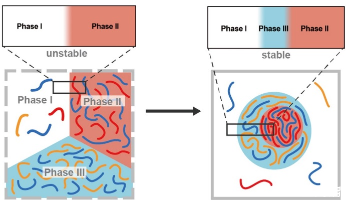 帶相反電荷的聚電解質(zhì)鏈在溶液中會(huì)發(fā)生液-液相分離,形成富含高分子的濃相(凝聚相)和幾乎不含高分子的稀相。這類復(fù)合凝聚現(xiàn)象與原始細(xì)胞模型、無(wú)膜細(xì)胞器的形成及生物分子的有序組裝結(jié)構(gòu)密切相關(guān),對(duì)理解生命體系具有重要意義。在液-液相分離過(guò)程中,界面張力是一個(gè)極為重要的物理性質(zhì),它決定了復(fù)合凝聚物的許多基本特征,對(duì)多個(gè)領(lǐng)域的應(yīng)用有著決定性影響。