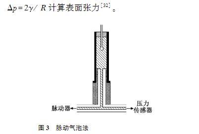 脈動氣泡法表面張力計已被廣泛用于天然表面活性劑或肺表面活性劑相關的化合物的研究。其可以通過設定脈動率與呼吸率相同,從而模擬呼吸動力學。測試時間較短,一般在5min內。但它也存在一些缺點,當待測液表面分子最大程度的壓縮在一起時,氣泡不再保持球形,故基于球形氣泡的假設來計算表面張力會帶來較大的誤差。另外,與Langmuir?Wilhelmy天平法一樣,膜表面泄漏的問題仍然存在。