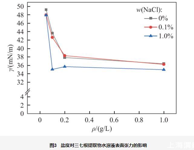 不同質(zhì)量濃度、pH、鹽度對三七根提取物水溶液表面張力的影響(二)