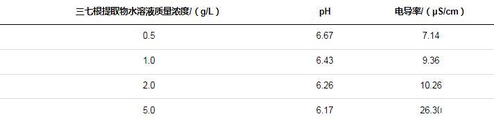2.1.1三七根提取物水溶液的pH和電導(dǎo)率