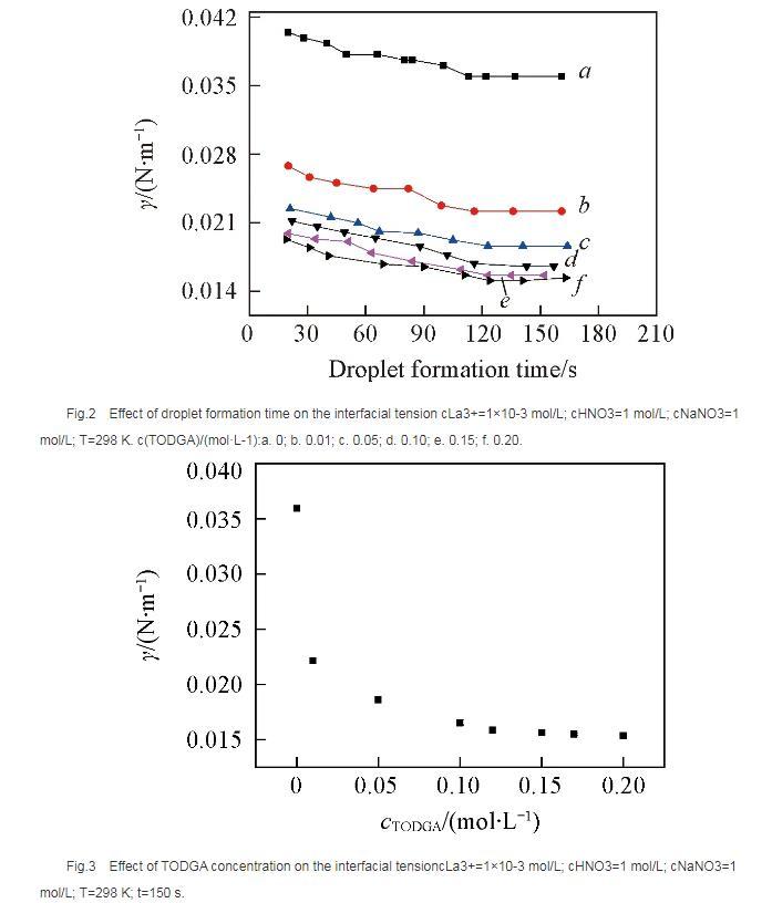 滴體積法分析TODGA/HNO3體系萃取La3+過程中界面張力變化影響因素(一)