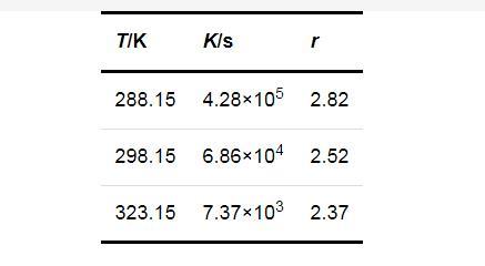 式中:K和r均為方程參數,可由實驗數據回歸得出.將圖1的數據回歸結果列于表1.進一步說明了過飽和度對成核誘導期的影響在較低的溫度下更為顯著.