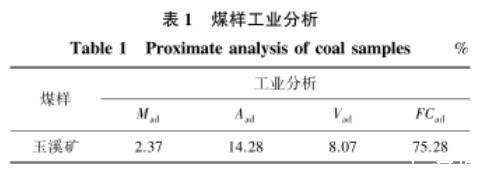 表1煤樣工業(yè)分析