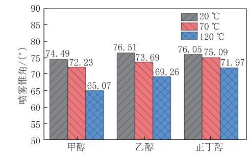 圖7環(huán)境溫度對醇類燃料噴霧錐角的影響