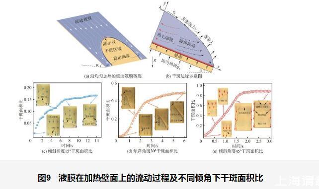 圖9液膜在加熱壁面上的流動(dòng)過程及不同傾角下干斑面積比
