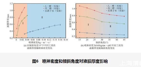 圖6噴淋密度和傾斜角度對(duì)液膜厚度影響