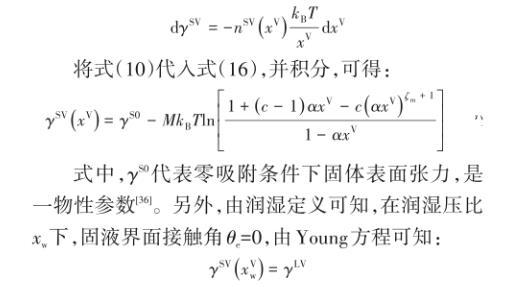 由Gibbs方程可知,氣固界面張力γSV與吸附量滿足: