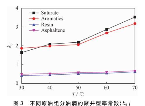 圖3不同原油組分油滴的聚并速率常數(k0)