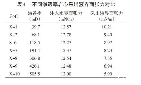 (1)實驗方法采用芬蘭Kibron dIFT雙通道動態界面張力儀檢測不同滲透率巖心的二次水驅采出液和原油的界面張力。