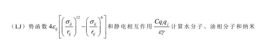 采用SPC/E模型描述水分子間相互作用,該模型中由于H原子質量小,對水分子間的H—H和H—O相互作用可忽略不計。選取C10H22為油相,原子間的相互作用勢采用CHARMM勢函數來描述。VA8模型在研究二硫化鉬結構和振動特性時具有較高的準確性,故選取其來描述納米片原子間的相互作用。以直鏈烷烴為改性劑改變納米片的親油親水性,采用CHARMM力場來描述原子間相互作用。采用6/12 Lennard-Jones(LJ)