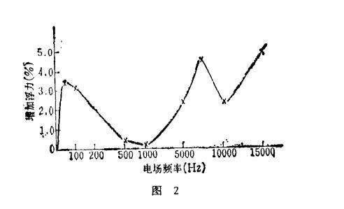 浮力和電場(chǎng)頻率之間關(guān)系曲線見圖2。