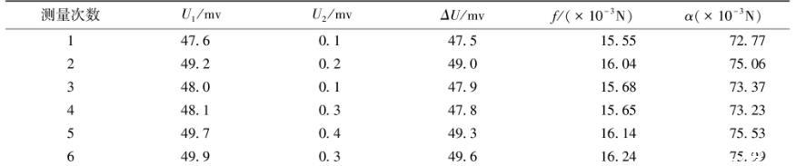 表3改進(jìn)后金屬吊環(huán)測量液體的表面張力系數(shù)數(shù)據(jù)表(水溫25℃)