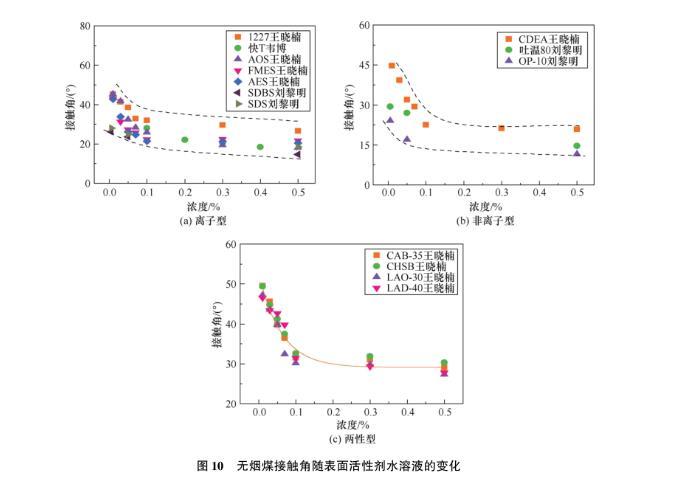 圖9低揮發(fā)分煙煤接觸角隨表面活性劑水溶液的變化