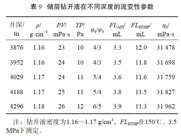 表9儲層鉆開液在不同深度的流變性參數