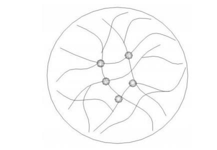 聚合物驅是油田開發穩產增產最重要的技術手段之一,在國內外油田得到了廣泛的應用。但聚驅后油藏儲層非均質性加劇,剩余油分布更加分散,常規方法已經無法滿足生產實踐的需要。近年來,改性聚丙烯酰胺已成為研究熱點,其中黏彈性顆粒驅油劑(B-PPG)由于其獨特的性能更是得以快速發展。B-PPG是通過多官能團引發合成的高分子支化鏈與三維交聯網絡結構共存的聚丙烯酰胺,其分子結構示意圖如Fig.1所示。這種“軟固體”凝膠顆粒以固體顆粒的形式懸浮于溶液中,具有較好的變形能力,運移過程中時堵時驅,可以有效調節地層的非均質性。同時,其又具有較好的耐溫抗鹽、耐老化能力。目前,B-PPG驅油劑已經在勝利油田、河南油田推廣應用,增油降水效果明顯。