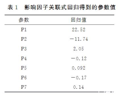 表1 影響因子關(guān)聯(lián)式回歸得到的參數(shù)值