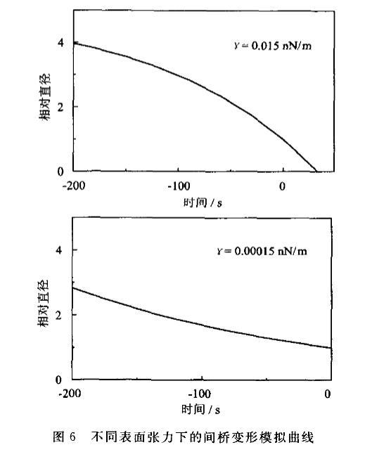 利用公式2通過OriginPro 8.0軟件對NRK細胞間橋動力學進行模擬得到的曲線見圖6。可以得出,表面張力取正常細胞1/10的理論曲線與整體blebbistatin處理組細胞D?點之前近似,而取正常細胞1/1000的理論曲線與整體施加blebbistatin并且同時抑制單側極區皮層肌動蛋白聚合的曲線近似。