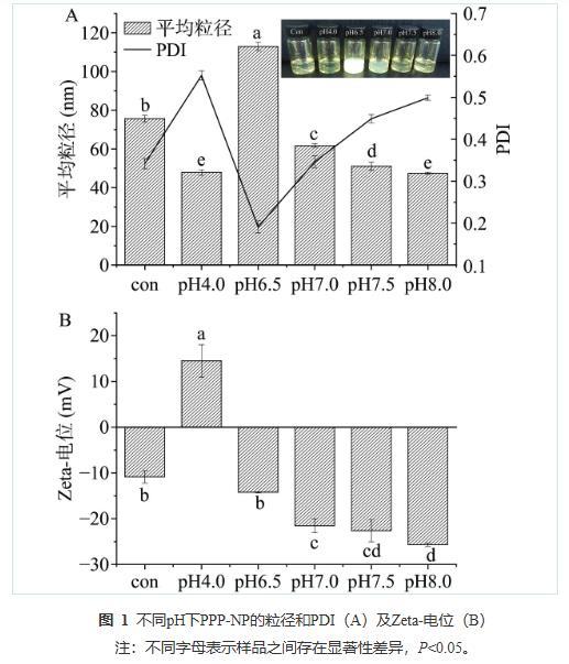 圖1A測(cè)定了不同pH對(duì)PPP-NP粒徑的影響。