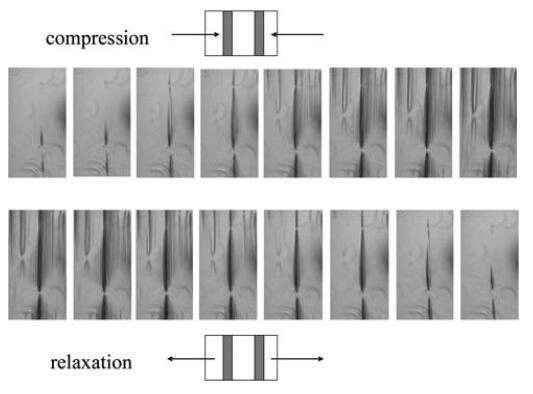圖4在4倍放大的透射光顯微鏡下,擴展HFBII層的壓縮和松弛。
