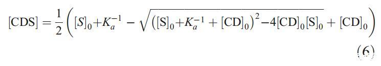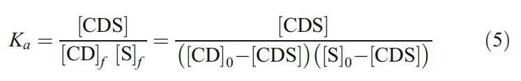 Ka通過將等式6與[CDS]與[CD]0的實(shí)驗(yàn)數(shù)據(jù)擬合而確定。在式6中,CD0和S0分別為總環(huán)糊精和總表面活性劑濃度。