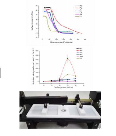利用單層技術表征超乳糖酸酶對不同磷脂的界面催化性能。