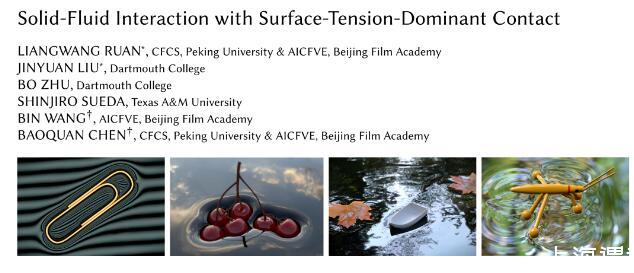 近日,在由北京大學陳寶權教授研究團隊與北京電影學院未來影像高精尖創(chuàng)新中心、達特茅斯學院、德克薩斯農工大學合作的論文《Solid-Fluid Interaction with Surface-Tension-Dominant Contact》中,作者們提出全新的模擬框架處理帶表面張力的流固強耦合,能夠精確模擬各種與表面張力相關的物理過程。