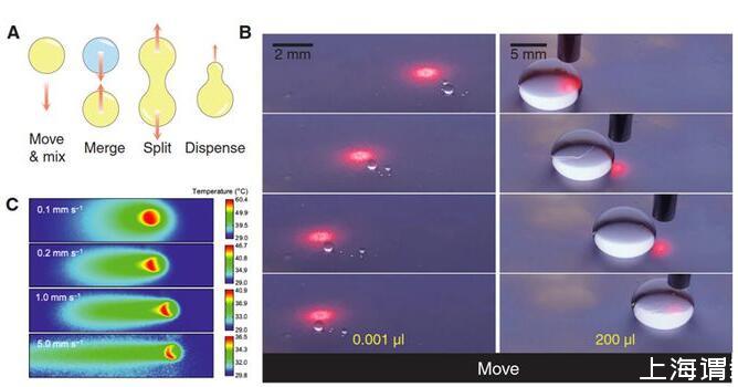 總結:在單束光的作用下,光電微流控平臺可以作為一只“魔力”的防潤濕的手來移動、切割、融合和分配任意液體,遙控且無損的精確操控液滴不僅在醫療檢測和生化分析等領域具有重要意義,而且在軟體機器人、3D打印、微流控加工制造等領域具有廣闊應用場景。