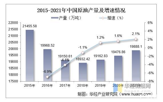 2015-2021年中國原油產量及增速情況