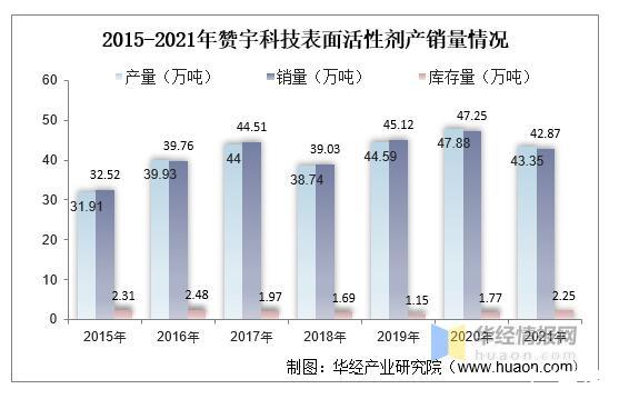2015-2021年贊宇科技表面活性劑產銷量情況