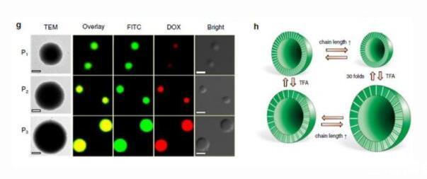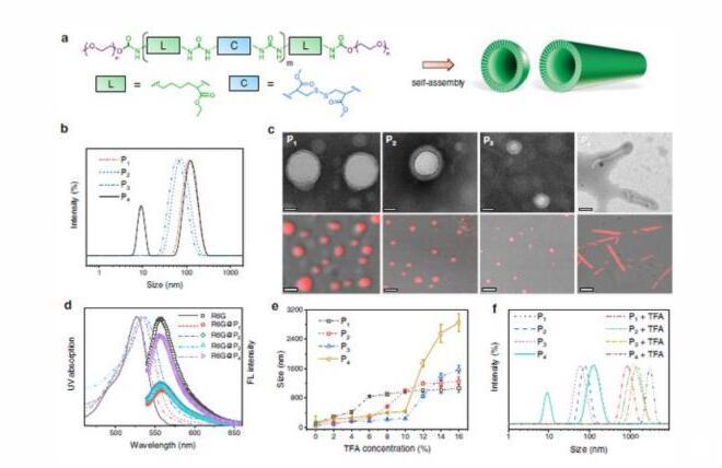 此外,通過構象介導多級自組裝,該聚合物可以形成囊泡或納米管,并表現(xiàn)出尺寸膨脹、收縮、變形和變色等行為。