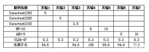 結合實驗1、實驗2的實驗可以明顯看出特種表活在除重油垢時的效果可以達到一個較普通常規表面活性劑更優異的效果,尤其是在常溫、常壓、低濃度清洗時,作用尤為明顯。在金屬清潔劑、金屬表面處理劑的實際應用中上述的多種特種表活可以直接應用于替代常規的NP類、AEO類表面活性劑,進行使用。