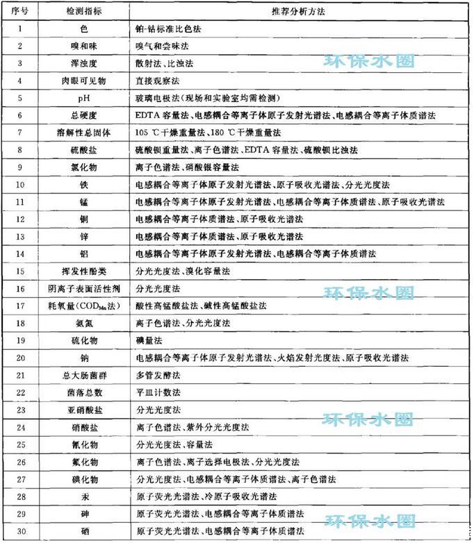 地下水質量檢測指標推薦分析方法
