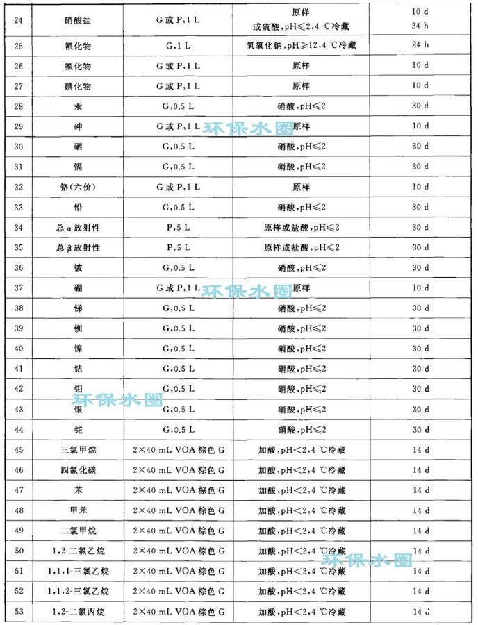 地下水樣品保存和送檢要求