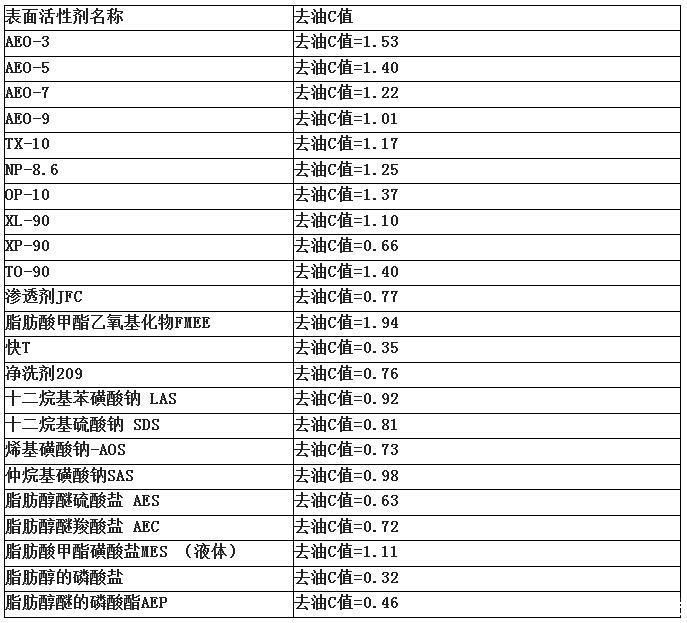 表面活性劑的去油測試(去油率法)按GB 9985—2000附錄B執行,以標準洗滌劑作標準配方.根據以下公式計算去油率(C):