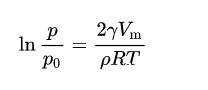 化學熱力學化學動力學方面就不說了,說一個不太一樣的。為什么潑在地上的水很快就干了,而洗完的衣服卻不容易晾干?并不是由于比表面積不同,衣服就只是一層布料,比表面積同樣很大。而是因為液滴的蒸氣壓與它表面的曲率半徑有關。這一關系由開爾文方程描述: