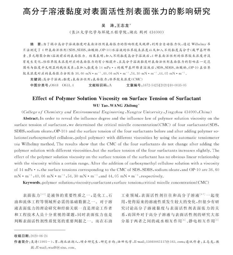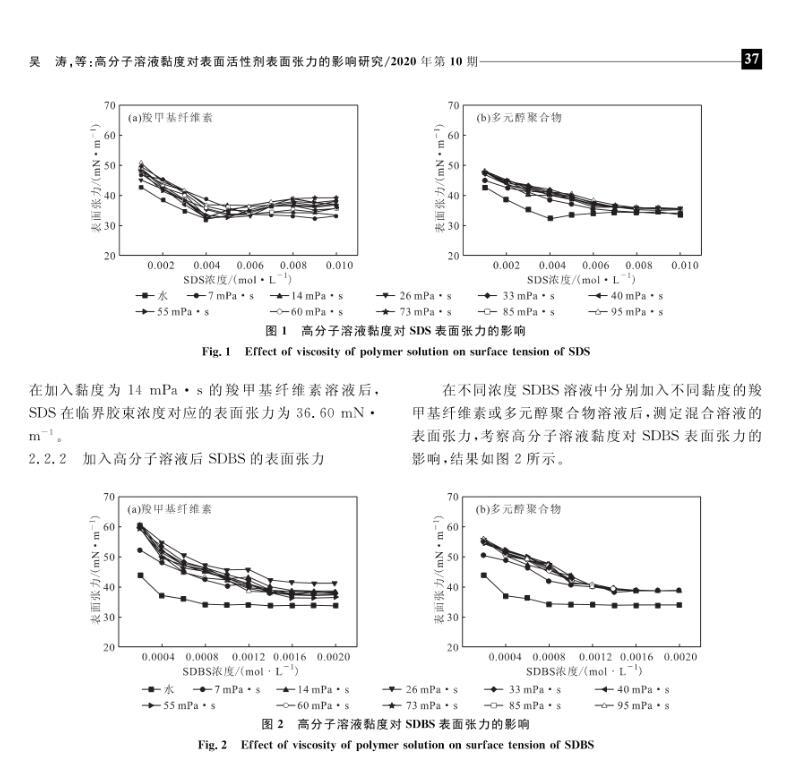 高分子溶液黏度對(duì)表面活性劑表面張力的影響研究