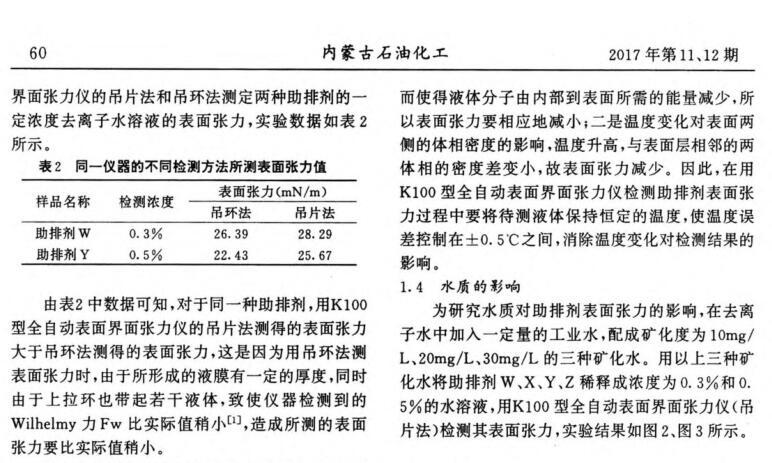 壓裂用助排劑表(界)面張力檢測影響因素分析