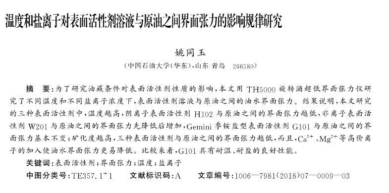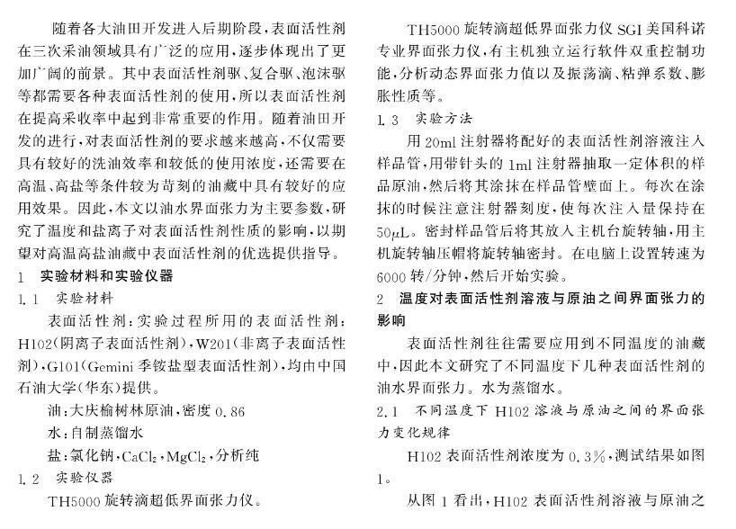 溫度和鹽離子對表面活性劑溶液與原油之間界面張力的影響規(guī)律研究