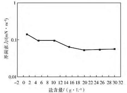 b.黏濃曲線體現(xiàn)出VES J良好的增黏特性,且在質(zhì)量分?jǐn)?shù)為0.02%時可使與W斷塊原油間油水界面張力降至10-2數(shù)量級;一定質(zhì)量分?jǐn)?shù)的無機鹽對黏彈性表面活性劑VES J的黏度特性產(chǎn)生積極影響,且體系可在礦化度30g/L時達(dá)到10-2數(shù)量級的界面張力,體現(xiàn)了復(fù)配體系良好的耐鹽特性;90℃較25℃黏度保留率達(dá)到74.6%,W地層溫度(65℃)有利于發(fā)揮體系降低油水界面張力能力。