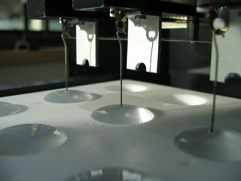 為了給用戶提供最為精確的表面張力/表面壓力,Kibron發(fā)展了一種新的精度超過0.2微克的微量天平,這種靈敏度與“最大拉力”原理相結(jié)合進(jìn)行測(cè)量。測(cè)量時(shí)先將一個(gè)探針浸入到界面,然后慢慢拔出,記錄彎液面(粘附在探針上的液面)的重量,該重量用于計(jì)算表面張力。